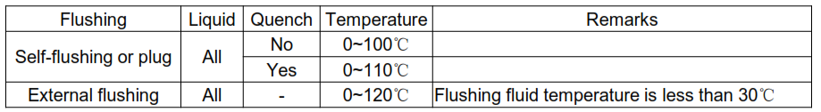 1) If delivered liquid temperature is over than 100℃, external flushing is recommended.
