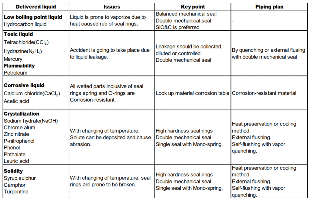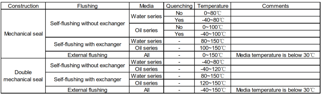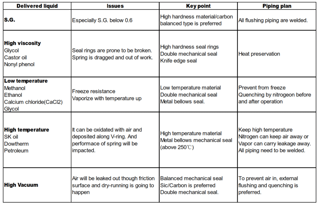 a, Pumped liquid temperature is below 0℃. The seal needs to be quenched when start-stop.