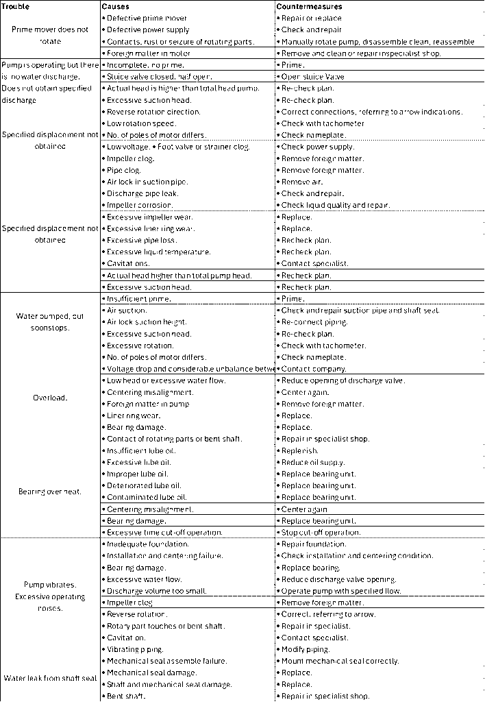 (1) When the pump stops due to power failure, turn of the switch and closed discharge valve. (This prevents sudden start of pump when power is restored).