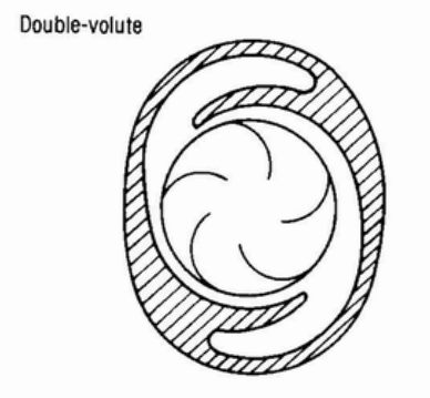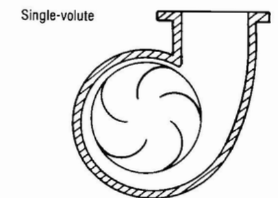 Volute pumps generally employ a single volute or double-volute type casing The single volute type is used for small single-stage pumps while the double-volute type is used for multistage pumps.