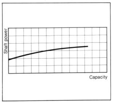 When the shaft power characteristics are graphically represented using the vertical axis for shaft power and the horizontal axis for the discharge flow rate, the curve obtained slowly rises as it proceeds to the right.