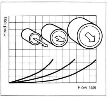 It is necessary, therefore, to take into consideration the flow friction of the pipes when looking at the pumping head. The pipe friction, which is