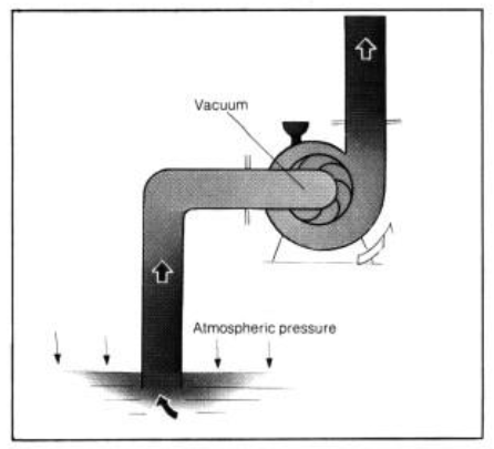 into the pump as a result of atmospheric pressure acting on the water surface.