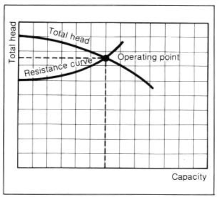 The pump is operated at the intersection be tween the head and resistance curves. This intersection is called the operating point of the pump.