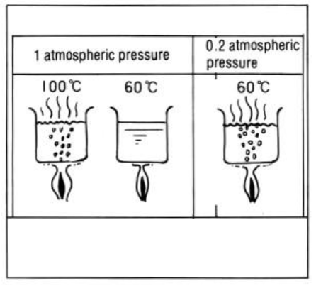 pressure is lowered to 0.2 atmospheres. If the pressure is lowered further, water will boil at an even lower temperature. Boiling means that