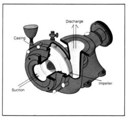 In this way, the rotation of the impeller of the volute pump produces both a vacuum and a centrifugal force as a result of which suction and discharge actions take place simultaneously. The continuation of these actions permits water to be raised from a low level to a high level.