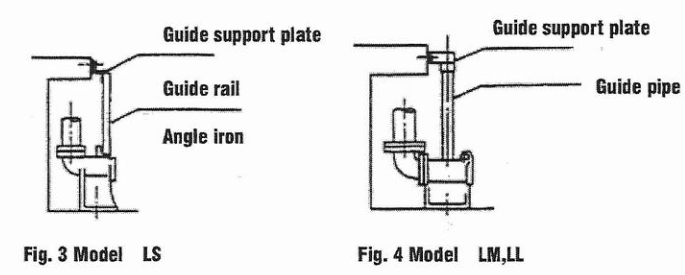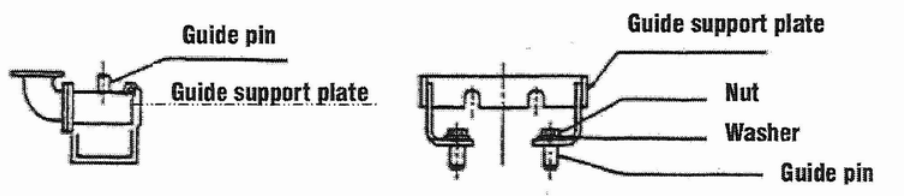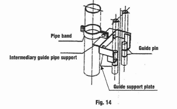(4) Secure the guide rail or guide pipe, whichever is provided, using guide support plate for vertical aligment (See fig.3,4)