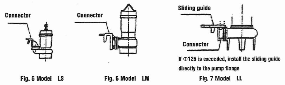 (8) Lift the pump using a chain fall or hoist and insert sliding portion of connector into guide rail (Fig.10) or insert sliding