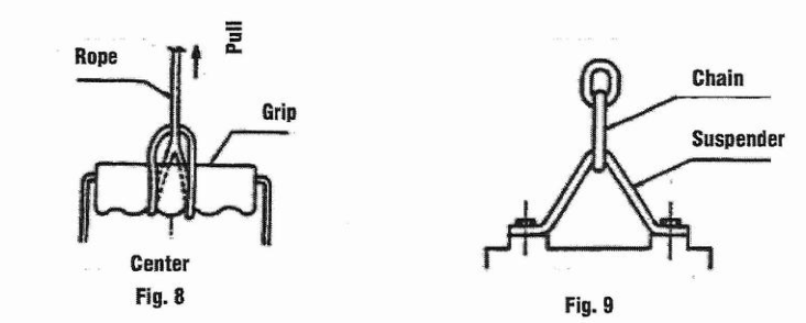 (7) Install suspension rope or chain to pump grip or suspender as shown in Fig. 8 and 9.