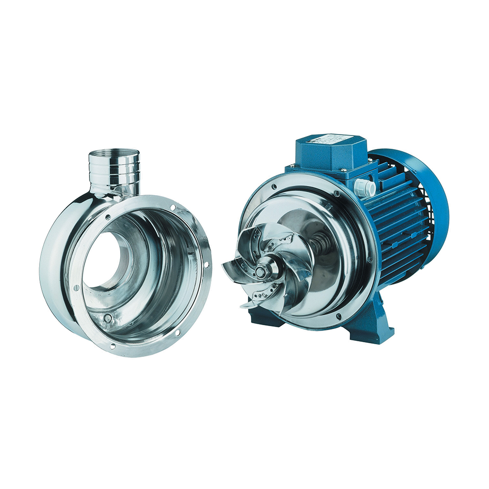 Centrifugal pump fitted with an open radial flow impeller in AISI 304 stainless steel, also making it suitable for pumping liquids that are not completely clean, but with solid parts up to 19 mm in diameter.