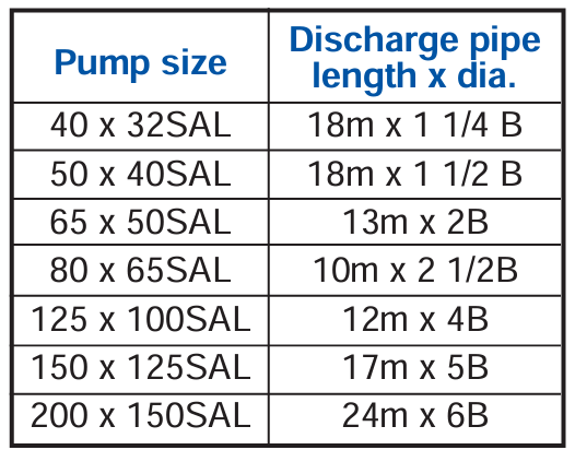 a- Discharge piping should be higher than top of tank.Total discharge piping length should be as shown in table below