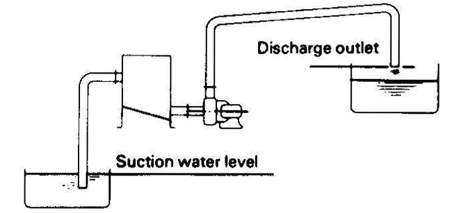 d- Do not use a check valve. Install so that there will not be a reverse flow at the end of the discharge piping.